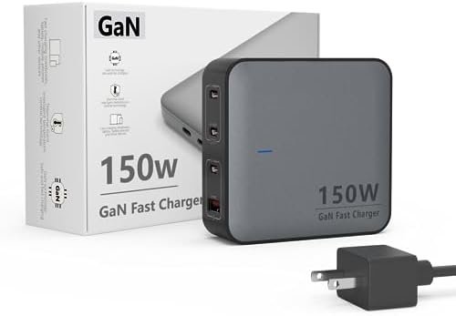 【Fast Charging Station】150W USB-C Multiport Charging Station for different devices: latest GaN chip, get a charge 3 times faster than your original charger This multiport charger features 3 USB-C ports and 1 USB-A port, providing max power of 150W to charge up to four devices at the same time.