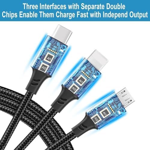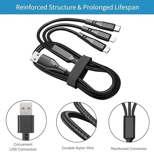 【Incredibly Durable】Comfortable Nylon Braided cord is tangle-free and unbreakable. Over 5000+ bend lifespan makes multi phone charger cable more durable than other cable. In addition, using high-quality heat resistant aluminum alloys terminals to increase reliability and durability. Connector tersted 10000+ times, never in worse connection.