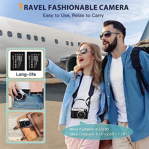 🏖️𝐄𝐚𝐬𝐲-𝐭𝐨-𝐔𝐬𝐞 𝐓𝐮𝐫𝐧𝐭𝐚𝐛𝐥𝐞 & 𝐏𝐨𝐫𝐭𝐚𝐛𝐥𝐞 𝐓𝐫𝐚𝐯𝐞𝐥: The point-and-shoot camera changes some settings into an easier 360° dial for the seniors, teens, or adult beginners to use and operate. The vlogging travel camera is fashionable and has an ultra-compact design, easily putting the compact portable camera in your pocket. 0.32 LBS fits the size of a teen’s palm, and upgrade lightweight materials ensure that the hands won’t feel tired when shooting for a long time!