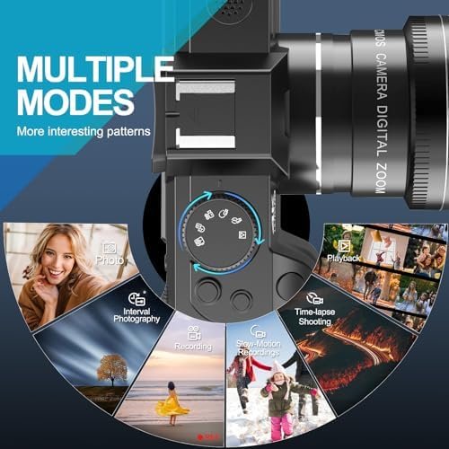 【Optimized 4K Digital Camera with 180°Flip Screen】: ATPLOES camera for photography excels at capturing 48MP images and recording 4K videos at 30fps. This vlogging camera for YouTube features a 3-inch screen that rotates 180 degrees, ideal for selfie shots and ensuring you capture every angle with precision. The package includes a 52mm wide-angle and macro lens for versatile shooting options.