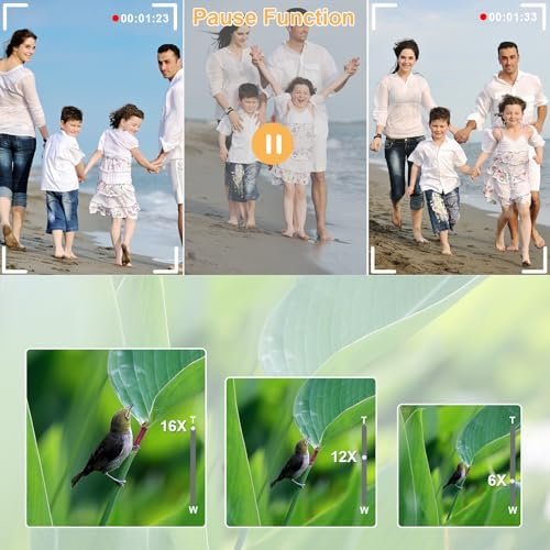 【Wifi Control & Vedio Pause】Connect your phone to the camera’s wifi, you can control the cameras in real time to take pictures and record remotely, the photos can be instantly downloaded to your phone or computer for easy sharing with family and friends;You can choose to pause the video during the recording process, which has saved your time in editing the video