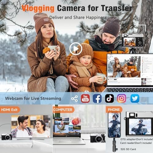 📨TRANSFER & SERVICE: The digital camera with various accessories can be connected to a 1/4 screw tripod and a microphone(by the hot shoe). Use the HDMI cable to transmit to the TV for viewing, and connect to the computer by the Type-C cable to upload quickly! In addition, we provide a 1-year hassle-free camera, 32G micro SD card, and 2 rechargeable batteries…, if you have any questions, feel free to contact our service staff to quickly reply!