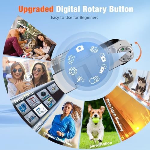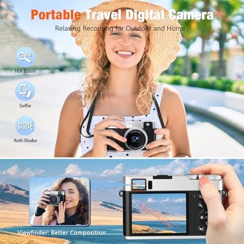 📷CAMERA WITH VIEWFINDER AND DIAL: 48MP 4K digital camera takes stunning photos and videos, and CMOS True Color technology captures detailed and realistic textures. This vlogging camera with viewfinder can reduce the impact of bright light when shooting in summer, helping beginners achieve professional composition! The small point-and-shoot camera with a rotating dial allows teens, beginners, and the elderly to quickly get started.