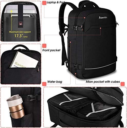 Asenlin 40L Travel Backpack for Women Men,17 Inch Laptop Backpack Flight Approved Luggage Carry On Water Resistant Computer Backpack for Weekender Overnight Large Daypack Black