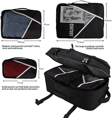 Carry and Travel: The large backpack carries 3 custom-made storage bags, which can improve your travel quality. The overall size meets the size standards of the aircraft, and the portable zipper opening facilitates you to quickly pass the airport security check.It has built-in elastic bands to keep your clothes from falling out.