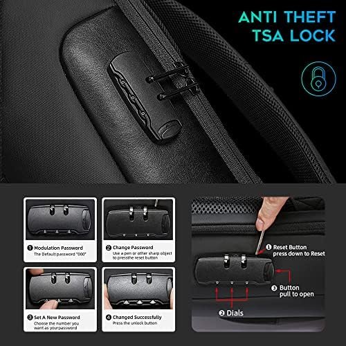 ANTI THEFT BACKPACK: The computer backpack is equipped with a smart secure lock that is made of high strength zinc alloy with a solid, compact body to prevent theft and well safeguard all your valuables securely. The password lock is easy to set (Includes instructions), please see A+ for the detailed instruction.
