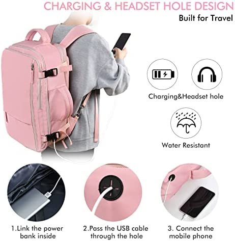 ❤【USB Charging & Headphone Port Design】This USB backpack adds a unique charging port design,uses a data cable to connect the power bank inside the backpack and the mobile phone outside,offers you a more convenient way to charge your phone while walking.(Note: The power bank and cable are not included). There are also two extra storage bags that can be used to store toiletries or cosmetics.