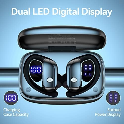 Dual LED Displays Charging Case: Wireless earbuds with LED display make it obvious to show the battery power of the case and ear buds. The remaining power in percentage on the screen is shown to the left of the bluetooth headphones. The right side is assigning to a charging process of each bud, there are separated power consumption indicators by 4 grids in total, each grid represents 25% power of bud. During Charging, the LED indicator light will flash.