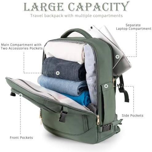 【Spacious and Organized】Featuring multiple compartments and pockets, for example, easily accessible front compartments, roomy main compartment and separate laptop compartments designed to hold laptops/computers, Rinlist traveling backpack will surely keeps your belongings organized and easily accessible.