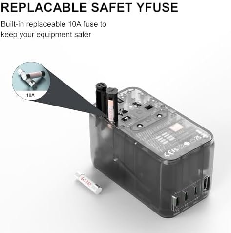⚡【100W High Speed Charging】This 100 watt universal travel adapter comes with a 2m/ 6.5ft 5A E-marker USB C to USB C cable for home, office and travel.It is capable of intelligently identifying connected devices and detecting and delivering optimum charging current, ensuring fast and safe charging. No need to carry extra adapters and power strip for your trip.