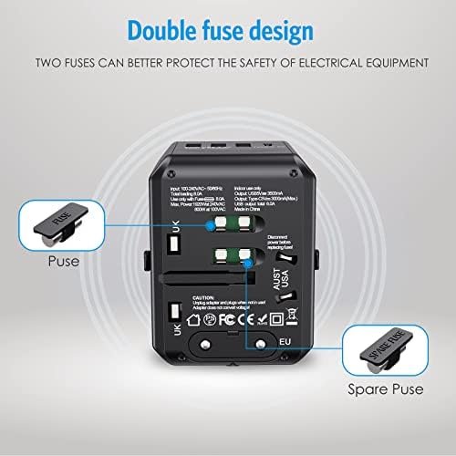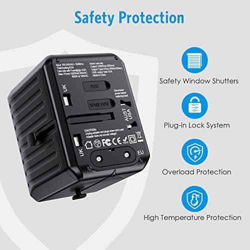 🔋【Multiple Protection】- All-in-one adapter plug with safety fuse protection, built-in safety shutter, LED power indicator. Built-in smart IC chip intelligently identifies your device with over-voltage, over-current and short-circuit protection to better protect your device from unnecessary losses. (Comes with 2 spare fuses can be replaced and used)