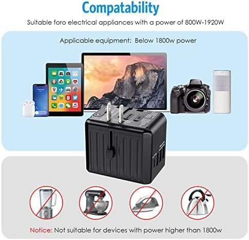 🔋【Suitable For A Wide Range Of Devices】- The travel adapter supports a range of inputs from 100V to 240V. USB charging output up to 12W (5V/2.4A) and Type C output up to 18W (5V/3A, 9V/2A, 12V/1.5A). Perfect for cell phones, game consoles, laptops, tablets and hair dryers (below 1800w) and other appliances for travelers, business people and students.