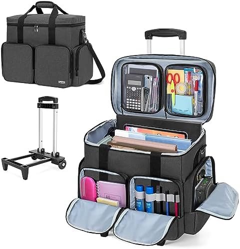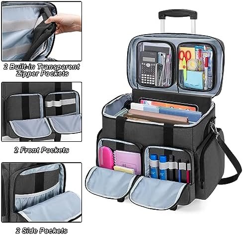 DIMENSIONS – L16.1″ * W9.3″ * H14.4″. CURMIO teacher rolling tote suitable for teacher, tutor, college instructor or those who need to carry their academic files and tools. This large-capacity rolling bag also can be used as a rolling laptop bag.