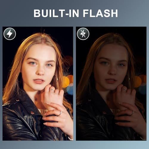 【Auto focus 56MP flash photography】 – Every happy moment is a blockbuster! Its built-in flash will emit a powerful and less dazzling light, while presenting exquisite photos, making it perfect for selfies in low light or dark conditions.