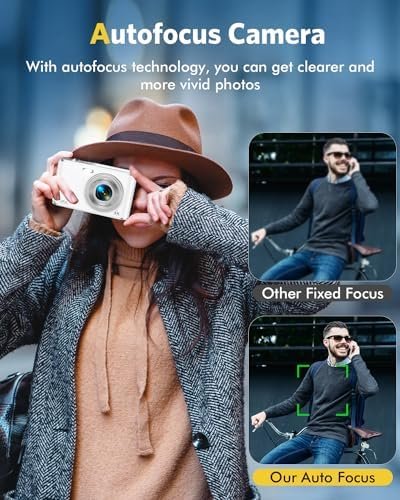 📸[AUTOFOCUS DUAL-CAMERA]- Innovative dual-camera design! Switch to the front camera for easy selfies with just one click, and utilize the rear camera for creative video, easily unlocking various shooting skills.The compact digital camera supports a powerful focusing function to ensure precise focus of the front and rear lenses, allowing you to easily capture clear and wonderful moments. Our 4k autofocus digital camera perfect as a Christmas or birthday gift!