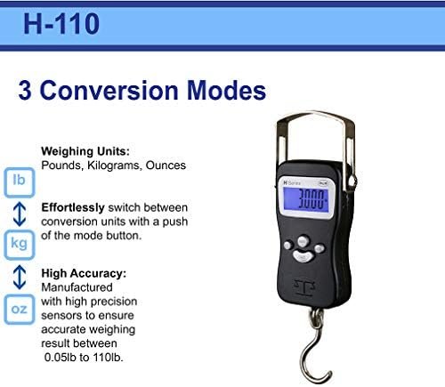 UNLIMITED WEIGHING – The H-110 now also features a Peak Hold mode which allows you to hold the highest weight on the display. This feature is great for measuring peak forces for a variety of applications including archery and measuring bow draw weight. Weigh anything in pounds or kilograms with a capacity of 110lbs with a minimum weighing capacity of 0.05lbs.