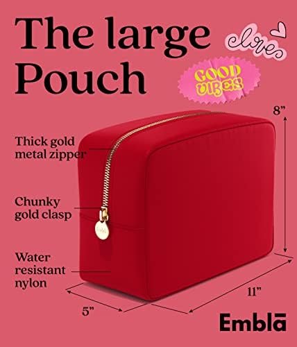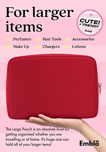 The Embla range of mini, small and large nylon makeup bag can serve as a travel cosmetic Bag organizer or a simple, single pocket large nylon makeup bag with zipper. All of our beauty pouches feature water-resistant premium nylon fabric to help protect all of your toiletries, cosmetics, hair tools and accessories. All of our pouches have a super luxurious, chunky and fashionable metal zipper. Fit all of your daily necessities, travel-size toiletries and beauty essentials in one big makeup travel bag. You will never have to search for another makeup bags for women again! THIS ITEM IS NOT INTENDED FOR USE BY CHILDREN 12 AND UNDER.