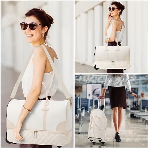 ✅【Built to Last and Comfortable to Carry】: Our travel bag is made with durable, water-resistant nylon to protect your items. The dual handles and detachable shoulder straps provide comfortable padding, making it easy to carry as a shoulder bag or messenger bag. Upgrade your travel experience with our Upgraded Rolling Duffel Bag.