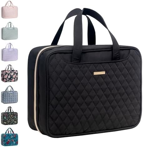 LARGER CAPACITY & CONVENIENT – 12*9*4.5 inches/8L (rolled), spacious enough to fill all your toiletries, makeups, jewelries, pills and other stuffs for home or travelling. So easy to zip it shut and isn’t bulging for its wider size in bag depth than others. Go with a 360°metal hang hook just hang it up at any place without taking up counter space. Transparent inner enables to find your stuffs at a full view glance.
