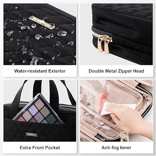 UPGRADED MATERIAL- Two-way high quality metal zipper closure for quick access in the folding cosmetic organizer, water-resistant exterior and well made transparent inner is able to easily clean out with a wipe, anti-fog inner that remains clear and won’t fog up like others. Sturdy stitching and heavy duty material which is wear-resistant and enable to bear stuff weight.