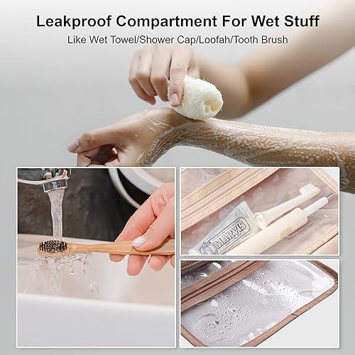 SEGMENT DRY AND WET STUFF – Independent water-resistant and leak-proof compartments in the first(top one) and last compartment respectively, well protect and more hygienic. Your toothbrush and towel can be stowed after using without damping other stuff.
