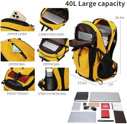 Specifications: Capacity: 40L Material: water resistawnt & tear-resistant nylon Zipper:SBS Weight: 1.9 pounds Gender: Unisex (Men, Women ) 1*Hiking Backpack Without Water Bladder Without Water Cover