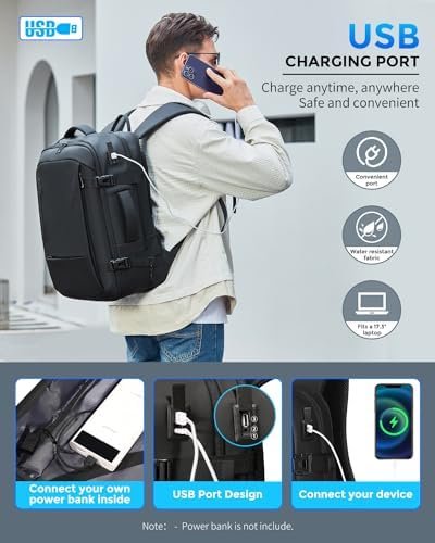 ✅【USB Charging Port】The expandable travel backpack weekender daypack features a built-in USB port that allows you to charge your electronic devices on the go. Please note that the power bank is not included.
