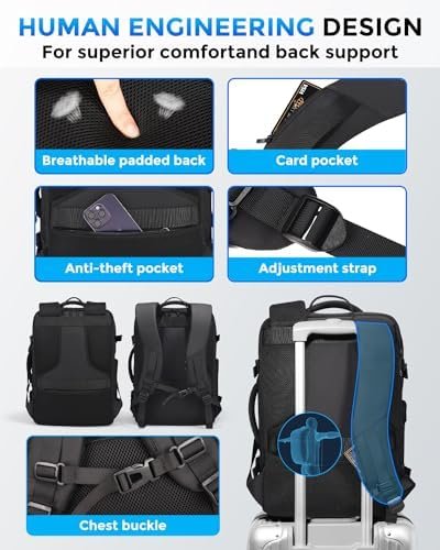 ✅【Durable Carry on Backpack】The black business travel backpacks are made of high quality durable abrasion, scratch, and water-resistant 900D Oxford materials, which can provide protection on drizzle days. Internal wet pocket in our carry-on backpack to protect your goods from water.(Zippers not waterproof)
