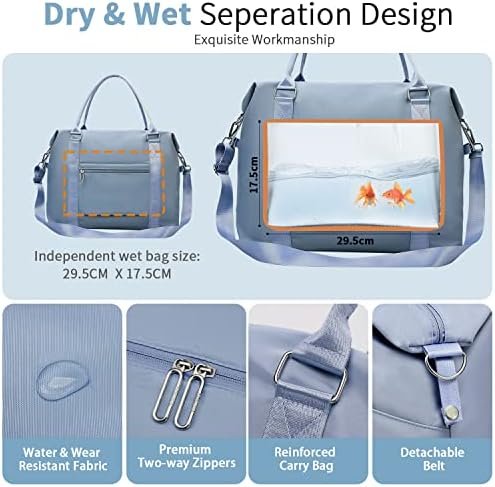 【Dry and Wet Separated】- The sports duffle has a separated waterproof wet pocket in the main compartment which can contain any of your wet towels or swimsuits.