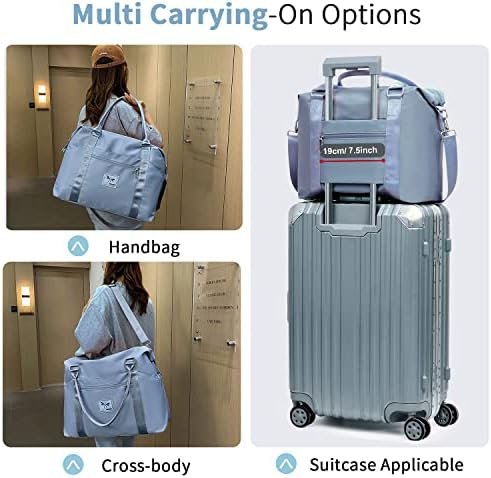【Large-Capacity Weekender & Overnight Bag】- The weekender bag has many internal and external organizational pockets,which enable you have enough place for everything. Totally, the overnight bag can hold 8 to 10 pieces of summer clothes, cosmetics, toiletries, wallets, keys, earphones, bank power, mobile phones, Ipads, laptop, files and etc.