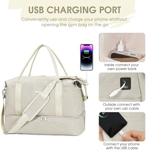 With Wet Pocket & USB Charging Port & Shoe Compartment