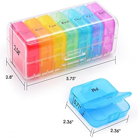 【Double Protection Design】Double protection design to reduce the risk of children ingesting drugs by mistake, A transparent outer box is matched with 7 color separate pill boxes. 2 times a day, and one box a day. Each pill box has a different color and is printed with the week date and the AM/PM icon on the box to make it easy to distinguish.
