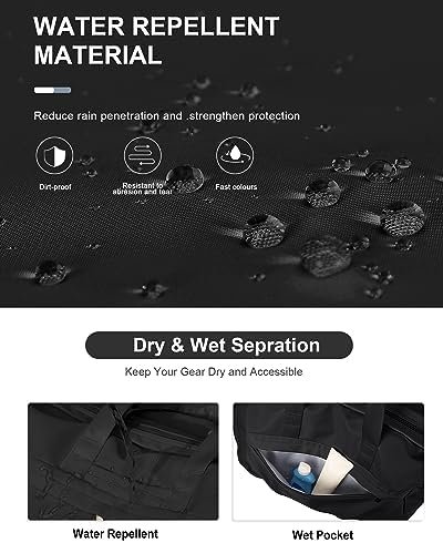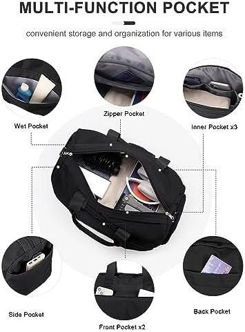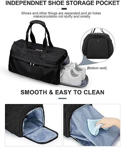 【Waterproof & Dry Wet Pocket】The bag is made from high-density waterproof material to repel water and keep the contents inside dry. The bag has a compartment designed specifically for separating dry items from wet ones like wet clothes or towels