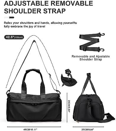 【Adjustable and Detachable Padded Shoulder Strap】The wekkend bag comes with an adjustable and detachable padded shoulder strap. This strap offers versatility in how you carry the small gym bag. You can wear it over your shoulder or across your body, and the padding helps make it more comfortable, especially when carrying the bag for extended periods.