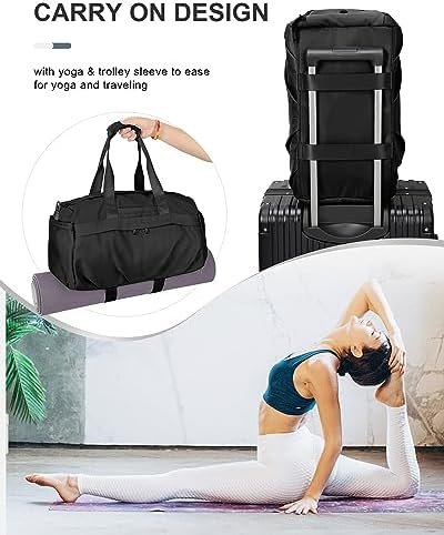 Gym Bag for Women Men with Shoe Compartment, Sport Duffel Bag, Waterproof Travel Weekender Overnight Carry on Bag for Yoga with Trolley Sleeve, Black set