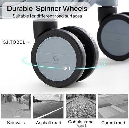 【High Quality Accessories】SJ . TOBOL durable spinner wheels,It is composed of precision shaft center and thickened TPE wheel skin, which is very wear-resistant,quieter and has strong bearing capacity, It is applicable to different roads such as cobblestone road and carpet road. Smooth and durable 5-strand reinforced explosion-proof YKK zipper reverse coil prevents burst zipper. TSA-approved combination lock is safe and convenient. Ergonomics telescopic handle with multi-steps adjustment.