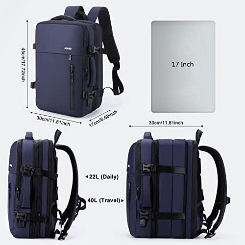 LARGE CAPACITY & EXPANDABLE: This extra-large travel backpack has an expandable feature that gives you even more packing capacity, up to 40 litres. Unzip for even more storage, then easily hold packing cubes, cosmetic bags, clothing, camera bags, and gear for 3 to 7 day trips. The carry on bag fits overhead and under the seat, while the standard carry-on size is ideal for men, women, weekenders, or the occasional vacationer.