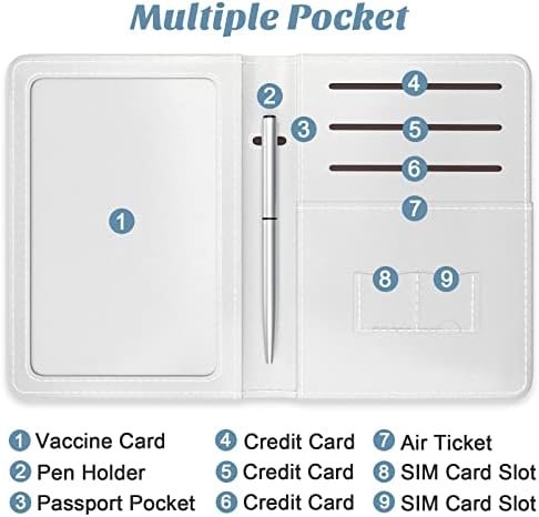 【Multi-function Organized】Passport wallet with a specialized slot to hold your vaccine card, and a variety of card slots to holder your passport, boarding check, credit card, SIM, driver’s license, cash, checkbook and more. It is convenient to access vaccine card and passport during boarding and transit.