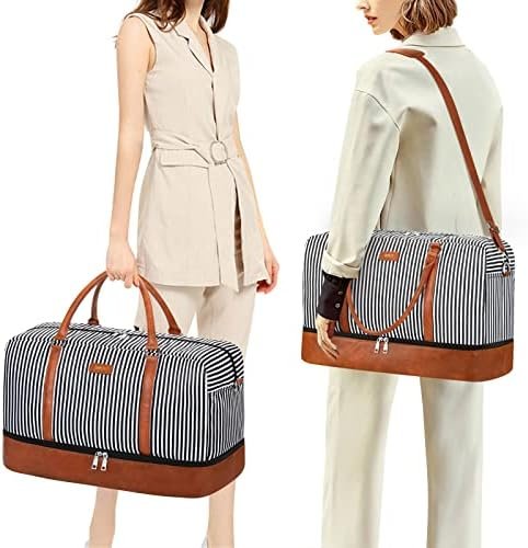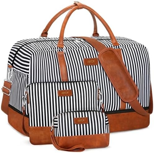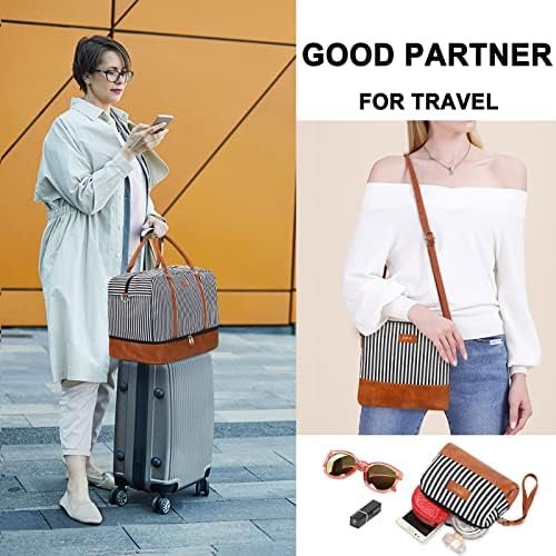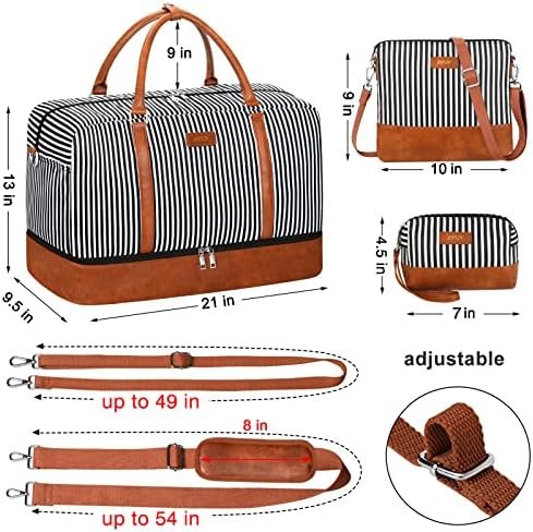 Weekender Bag with Shoe Compartment: The bottom is a waterproof separated compartment, you can take shoes, dirty clothes, wash bags or other things in it, keep them clean and tidy. The set comes with 2 shoulder straps, you can carry travel bag on one shoulder or crossbody, releasing your hands and reducing pressure on hand.