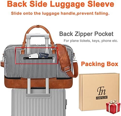 IBFUN Weekender Bags Contains: large weekender bag, messenger bag, storage bag. This pattern is mainly made of high-quality Canvas fabric and PU leather. With enough space for your weekend trips, short-term business trips, and daily trips.