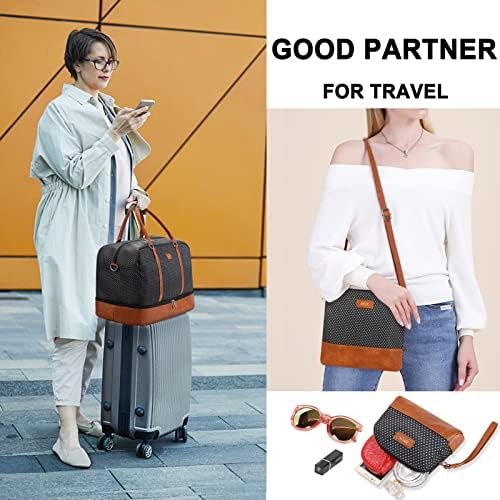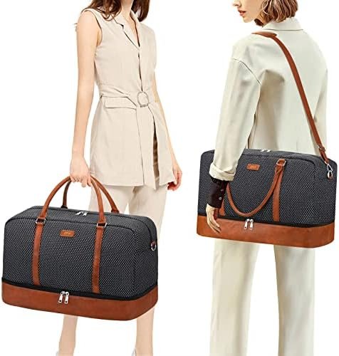 Weekender Bag with Shoe Compartment: The bottom is a waterproof separated compartment, you can take shoes, dirty clothes, wash bags or other things in it, keep them clean and tidy. The set comes with 2 shoulder straps, you can carry travel bag on one shoulder or crossbody, releasing your hands and reducing pressure on hand.