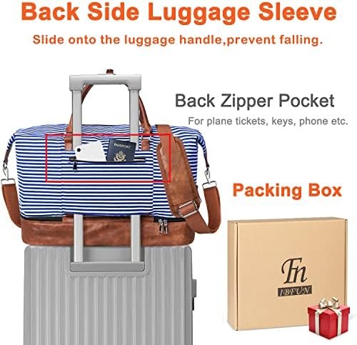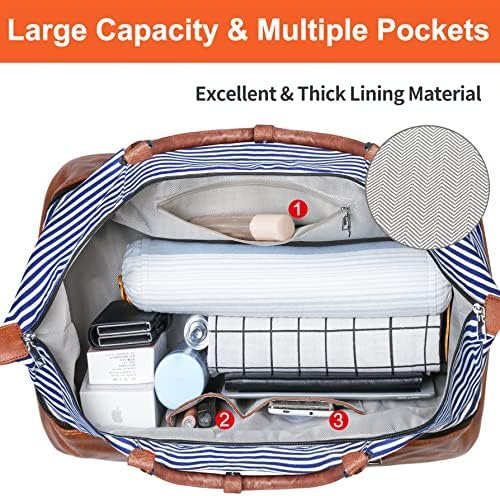 IBFUN Weekender Bags Contains: large weekender bag, messenger bag, storage bag. This pattern is mainly made of high-quality Canvas fabric and PU leather. With enough space for your weekend trips, short-term business trips, and daily trips.