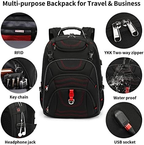 EFFORTLESS PACKING & AMPLE STORAGE: Effortlessly organize your belongings with our thoughtfully designed backpack. Five exterior pockets allow for easy packing, while the spacious main compartment holds 3 or 4 days’ worth of clothes. Protect your laptop in the padded compartment, and stay organized with pen sleeves, card slots, key leash, RFID pocket, and hidden security pocket. Travel with peace of mind knowing everything has its place