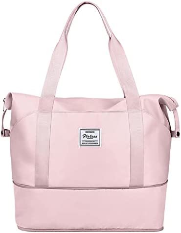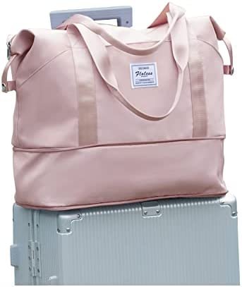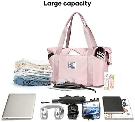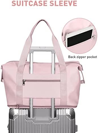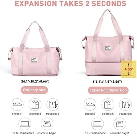 【High Capacity Travel Bag】Travel Bag has three multiple internal and four external organizational pockets,which ensure you placed more scientifically and orderly.The overnight bag for women has Large Capacity.Ordinary size :41*26*22CM,Expansion Dimension:41*37*22CM.You can carry it onto an airplane. Large storage space for a clothes for short trip.It has a capacity of 35L and can hold 6 to 8 pieces of summer clothes,Cosmetics,toiletries,wallets,keys,earphones,mobile power,mobile phones,files.