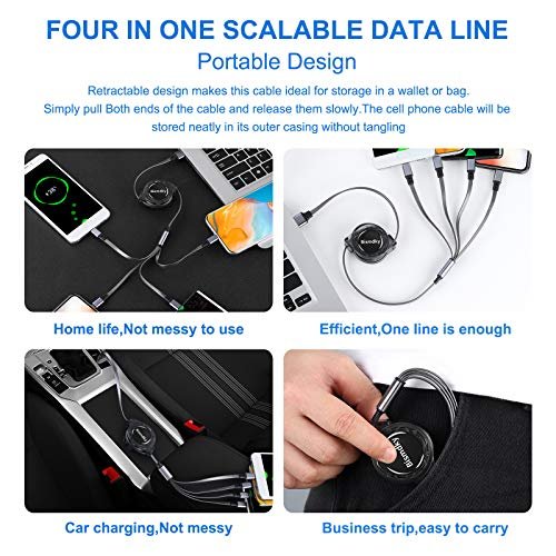 【Practical and essential charging cable】The retractable 4-in-1 multi-USB cable can provide a one-stop portable charging solution, and you don’t need to carry any other cables when you are at home/car/office or on the go.