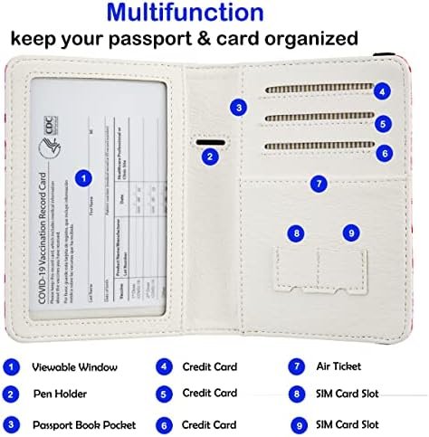 COMPACT AND PRACTICAL DESIGN: The passport cover keeps all your travel documents together, so you never have to worry about forgetting anything. The passport wallet can hold your passport, business cards, credit cards, boarding passes and CDC vaccination cards. There are two SIM card slots for SIM cards and a pen slot for pens.