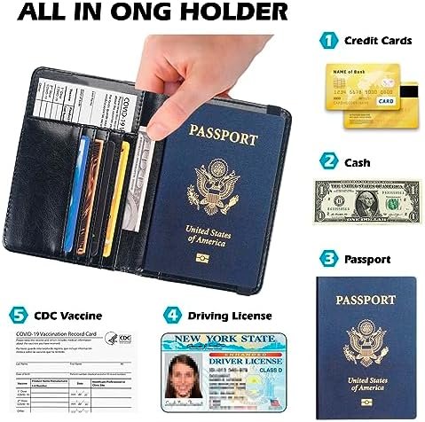 Leather Travel Passport Wallet Organizer Women with Vaccination Card Protector Slot