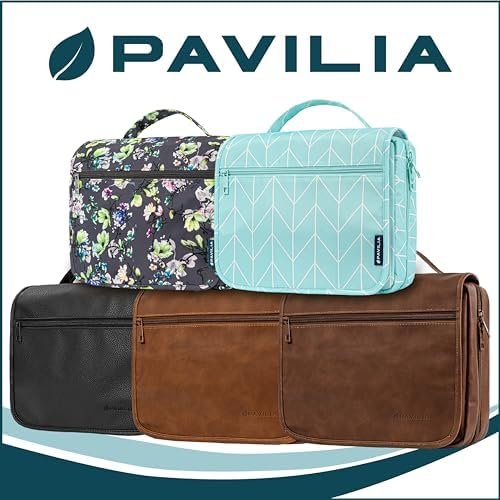 HANGING TRAVEL TOILETRY BAG: PAVILIA large travel bag toiletry organizer case with dimensions of 11.75 x 3.5 x 8.5 inches when folded and 11.75 x 38 inches when unfolded. It has 4 separate compartments with 1 zipper front pocket to fit all your travel toiletries containers, makeup, and cosmetic bottles. Main compartment has 4 mesh pockets to fit skincare bottles & transparent pockets to provide clear overview of contents.