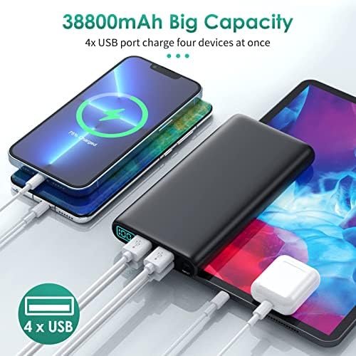 Portable Charger 38,800mAh, LCD Display Power Bank, 4 USB Outports + Dual Inputs USB C in&out Battery Pack