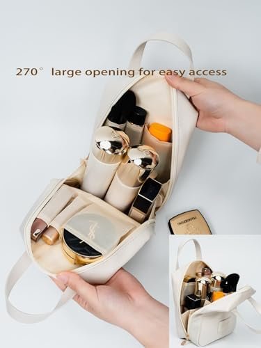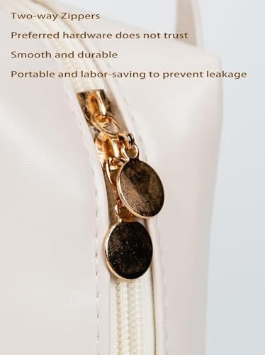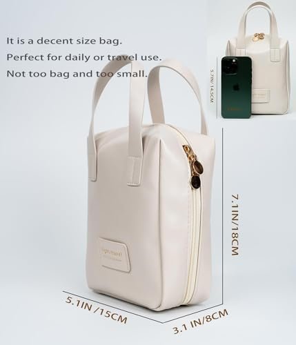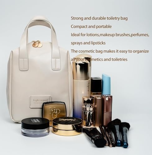 This travel makeup bag is perfect as a cosmetic bags and for carrying hand accessories. The double zipper tote is lightweight, and the PV leather is waterproof enough for travel.